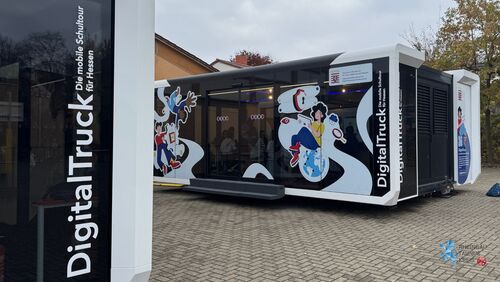 Schülerinnen und Schüler erleben im Digitaltruck des Landes Hessen praxisnah digitale Zukunftsthemen / Das Projekt ergänzt den Medienentwicklungsplan…
