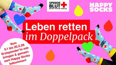 Wer eine coole Socke sein und gleichzeitig Leben retten will, spendet in den nächsten Wochen am besten Blut im Rheingau-Taunus-Kreis. Der RTK möchte auf die Blutspende-Aktion „Leben retten im Doppelpack“ des DRK-Blutspendedienstes Baden-Württemberg – Hessen aufmerksam machen und diese damit bestmöglich unterstützen. Ab sofort bis zum 20. Februar 2026 können Bürgerinnen und Bürger im Rheingau-Taunus-Kreis an verschiedenen Schulen und in öffentlichen Einrichtungen gemeinsam Blut spenden. Wer dabei eine Erstspenderin oder einen Erstspender mitbringt, wird doppelt belohnt: Beide erhalten ein Paar exklusive Happy Socks im DRK-Blutspende-Design.